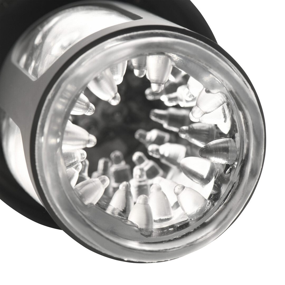 Unutrašnjost masturbatora izrađena je od mekanog, teksturiranog materijala s posebno oblikovanim izbočinama koje pružaju bogatu stimulaciju pri svakom pokretu. Automatizirana funkcija rotiranja i potiskivanja oponaša prirodne pokrete, stvarajući duboke i ritmične senzacije koje se mogu prilagoditi vašim željama.