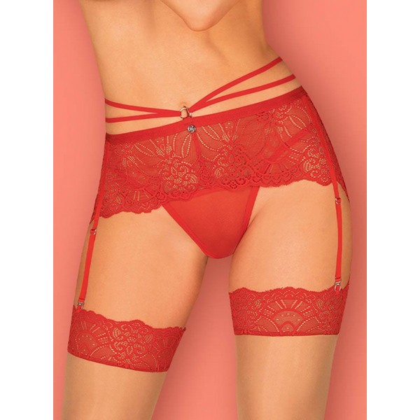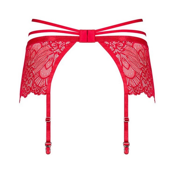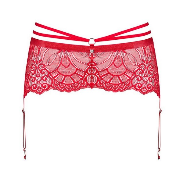 Halteri Obsessive Loventy u intenzivno crvenoj boji. Izrađeni su od poliamida i elastina bogatog čipkastog uzorka. U gornjem dijelu imaju 2 ukrasne trake koje naglašavaju struk. Halter kopče su elastične i mogu se podešavati.
