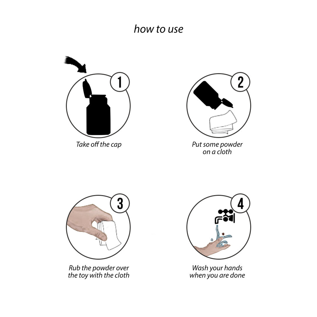 Redovitom upotrebom puder sprječava isušivanje i ljepljivost, koje nastaju prirodnim “znojenjem” ulja iz TPE materijala tijekom vremena. Idealan je za realistične dildo igračke, masturbatore i seks-lutke, pomažući da ostanu čiste, mekane i ugodne na dodir te da privlače manje nečistoća.